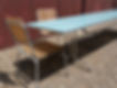Das Gestell wird aus Edelstahl-Rundrohr gefertigt und anschliessend feuerverzinkt. Die Tischplatte besteht aus Faserzement und ist in unterschiedlichen Farben erhältlich.